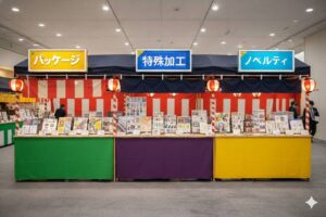 展示は「会社名」ではなく「価値」を軸に、シール・ラベル、特殊加工、パッケージ、文具・紙加工製品、推し活グッズ・ノベルティ、環境対応製品などのカテゴリー別に展開。出展社の強みに応じた調整も可能だ。